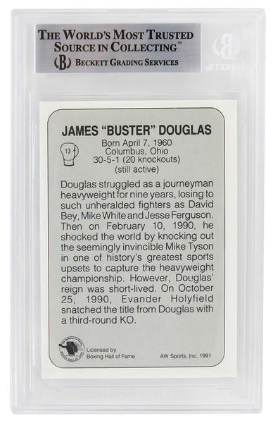 James Buster Douglas signed 1991 All World boxing trading card #13. The card has been authenticated and encapsulated by Beckett Authentic and the authentication number can be verified online. The image of the item is a stock photo, as we may have multiples of the item in stock. The Slabbed Card you will receive will be of the card described. (Same grade, Same authentication) You may or may not receive the exact Beckett serial number on the slab label shown in image.