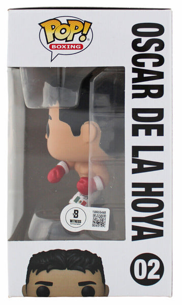 This Autographed Funko Pop Vinyl Figure has been Personally Signed by Oscar De La Hoya. This item is 100% Authentic to include a hologram by Beckett Authentication Services. This item will come with an affixed Beckett Authentication Services (BAS) authentication sticker, which includes a scannable QR code to verify authenticity. Please note that Beckett no longer provides serial-numbered COA cards, and the attached BAS sticker will serve as the complete authentication for this item. This is a BAS Witnessed Protection Program item which means a Beckett Authentication Service representative was present when this item was being signed. We conducted an autograph signing with Oscar De La Hoya where multiples of the same item were signed. While the photographs are representative of this item, the size, placement and strength of the signature may vary. Each item is hand signed, therefore, each autograph is unique. This item can be verified through BAS Witnessed.
