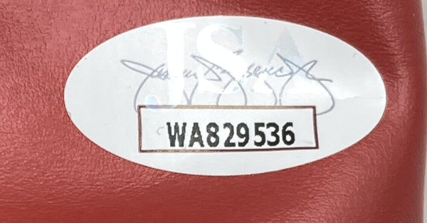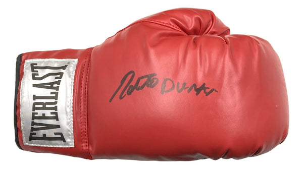 Featured is a Roberto Duran signed Everlast boxing glove. This glove has been hand signed by Duran and comes with the JSA witnessed hologram and certificate of authenticity. Included with this glove is a deluxe acrylic display case. This glove would make a great addition to any sports memorabilia collection! SPECIFICATIONS Autographed By: Roberto Duran Team: Sport: Boxing Authentication: James Spence Authentication (JSA)