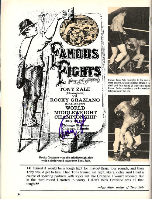 This is a Magazine that has been hand signed by Tony Zale. It has been certified authentic by PSA/DNA and comes with their sticker and matching certificate of authenticity. This one is signed 5 times.