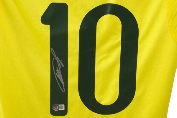 Nike style jersey with everything pressed on, size Adult Large. Hand-signed by Kaka.The autograph includes an official Beckett Authentication Services serially-numbered hologram and QR Code card for authenticity purposes.Authentication: Beckett Hologram with QR Code card