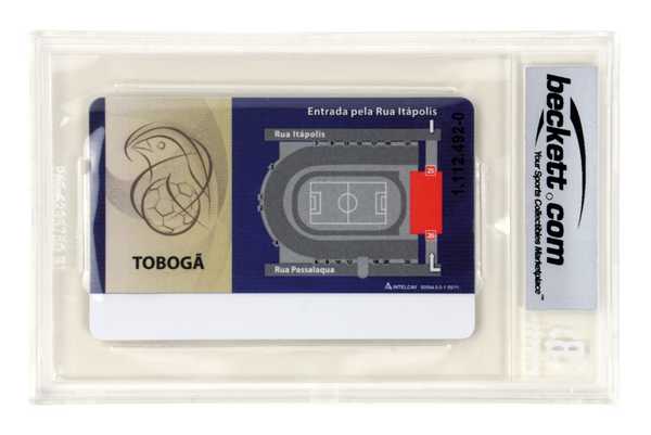 This is a Ronaldo Nazario Signed 2011 Last Game for Brazil FC Match Ticket - BGS 7. THE ITEM IN THE PICTURE IS A STOCK IMAGE. YOU WILL RECEIVE AN IDENTICAL ITEM OF EQUAL QUALITY. ALL JERSEYS ARE SIZE LARGE. Every item of signed memorabilia we sell is official and of the highest quality. We pride ourselves on providing sports fans with the most exclusive signed memorabilia on the market. We are an industry leading signed memorabilia company who can guarantee 100% authenticity on every signature we sell. The item you receive will be identical to the one you are seeing in the stock pictures. This includes the item, the authentication company, signature color and signature placement. We take pride in ensuring the authenticity of all our items. With unwavering commitment, we guarantee that every signature is 100% authentic. Every item of signed memorabilia comes with a scannable barcode which takes you to the certificate of authenticity on the company's website. These industry leading authentication companies include Beckett Authentication Services, James Spencer Authentication Services and Professional Sports Authentication Services.