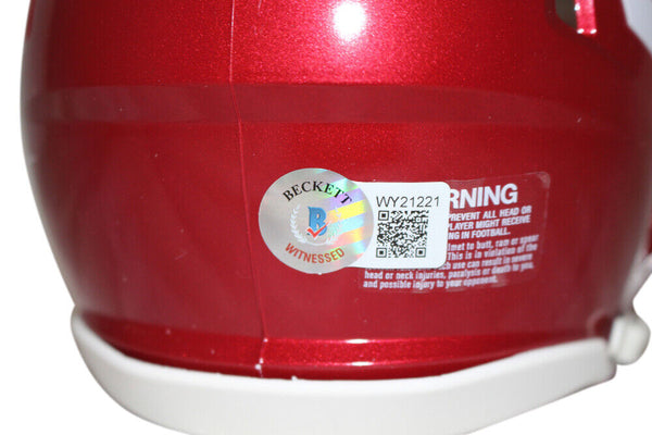 The number in the listing title is just an inventory sku for our records and is not the authentication number. The item pictured is a stock photo unless otherwise noted. This is an Oklahoma Sooners Speed Mini Helmet that was personally autographed by Brian Bosworth. Includes a certificate of authenticity from Beckett Authentication Services (BAS) and Denver Autographs.