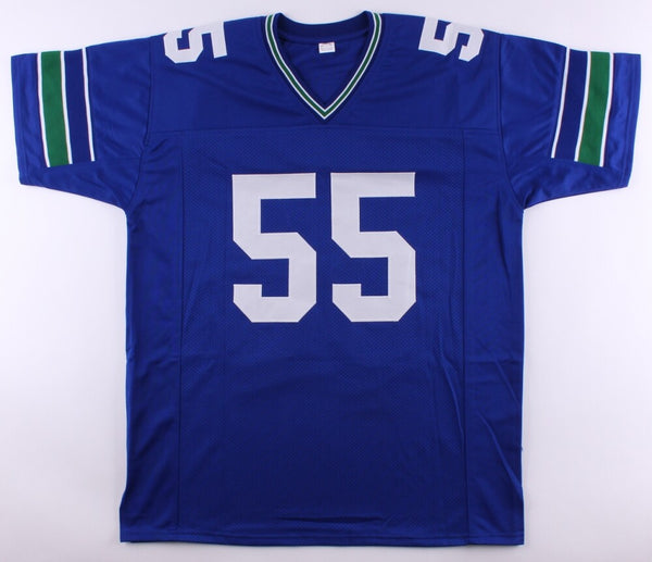 Custom on-field style jersey. Everything sewn on, size XL . Hand-signed by Brian Bosworth (Seahawks). Bosworth played college football for the University of Oklahoma, and was a two-time consensus All-American. He gained fame and notoriety through his flamboyant personality, controversial comments about the National Collegiate Athletic Association (NCAA) and radical hair cuts. The lot / autograph(s) includes an official James Spence Authentication (JSA) hologram and matching COA for authenticity purposes. The signing of this item was witnessed by JSA.Authentication: JSA COA