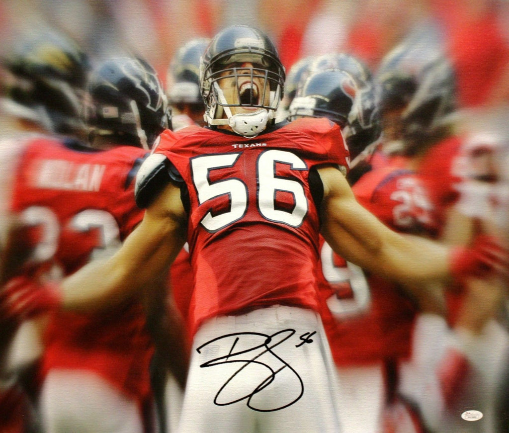 This is a hand autographed 20x24 Canvas of Brian Cushing of The Houston Texans. This item has a James Spence Authentication, which comes with a JSA numbered sticker and a matching JSA COA. You can view this item on the SpenceLOA website and it shows when and where the item was signed. It was signed either at a public autograph appearance or a Private Signing. This is a stock photo of the item. Although you may not receive this exact item, the item you receive is virtually identical and brand new in great shape. This is a hand autographed 20x24 Canvas of Brian Cushing of The Houston Texans. This item has a James Spence Authentication, which comes with a JSA numbered sticker and a matching JSA COA. You can view this item on the SpenceLOA website and it shows when and where the item was signed. It was signed either at a public autograph appearance or a Private Signing. This is a stock photo of the item. Although you may not receive this exact item, the item you receive is virtually identical and brand new in great shape.