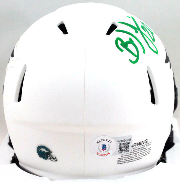 Brian Dawkins Autographed Eagles Lunar Speed Mini Helmet- Beckett W *Green This is a Brian Dawkins of the Philadelphia Eagles hand autographed Riddell Football Lunar Speed Mini Helmet. This item has a Beckett Witnessed Authentication, which comes with a numbered and a matching Certificate of Authenticity. You can view this item on the Beckett authentication website and it shows when and where the item was signed. It was signed either at a public autograph appearance or a private signing. This is a stock photo of the item. Although you may not receive this exact item, the item you receive is virtually identical, brand new, and in great shape.