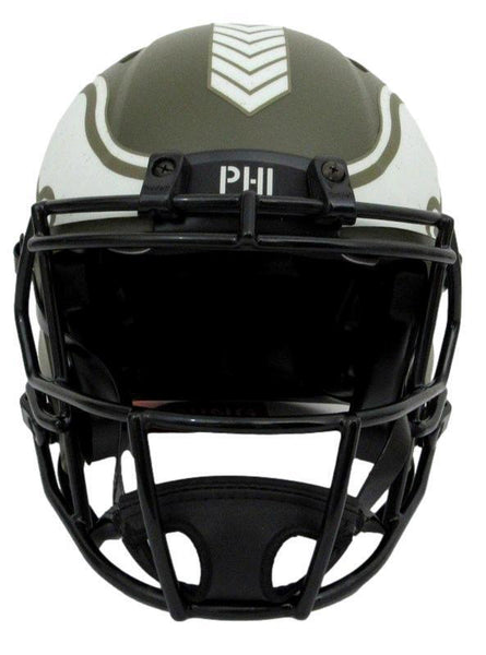 Brian Dawkins HOF Autographed Full Size Salute To Service Authentic Football Helmet Philadelphia Eagles. This helmet is authenticated by BAS/Beckett and includes their Tamper-proof Sticker.