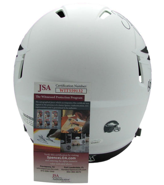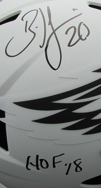 Brian Dawkins HOF Signed/Inscribed "HOF 18" Philadelphia Eagles Lunar Eclipse White Full Size Replica Football Helmet. This helmet is authenticated by JSA and includes their Tamper-proof Sticker and Certificate of Authenticity.
