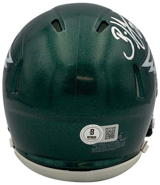 Enhance your sports memorabilia collection with this Brian Dawkins autographed Philadelphia Eagles mini helmet authenticated by Beckett COA. As a Hall of Famer and one of the most legendary safeties in NFL history Dawkins' signature on this Eagles mini helmet makes it a must-have for any football fan or collector. Featuring the iconic Eagles logo this hand-signed helmet is a perfect display piece for your home office or man cave. With Beckett authentication you can trust the authenticity and quality of this prized collectible. Add a piece of NFL history to your collection today!Stock image.