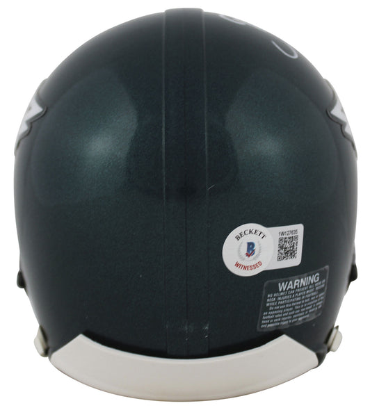 This Autographed Green Rep Mini Helmet has been Personally Signed by Brian Dawkins of the Philadelphia Eagles. This item is 100% Authentic to include a hologram by Beckett Authentication Services. This item will come with an affixed Beckett Authentication Services (BAS) authentication sticker, which includes a scannable QR code to verify authenticity. Please note that Beckett no longer provides serial-numbered COA cards, and the attached BAS sticker will serve as the complete authentication for this item. This is a BAS Witnessed Protection Program item which means a Beckett Authentication Service representative was present when this item was being signed. We conducted an autograph signing with Brian Dawkins where multiples of the same item were signed. While the photographs are representative of this item, the size, placement and strength of the signature may vary. Each item is hand signed, therefore, each autograph is unique. This item can be verified through BAS Witnessed.