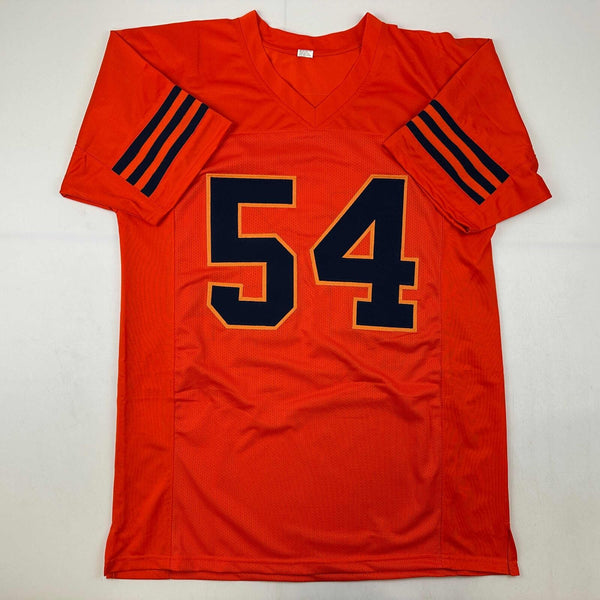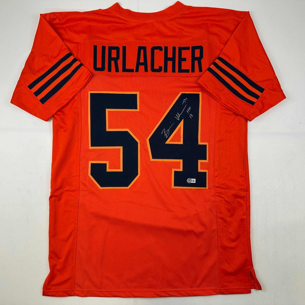 Autographed/Signed Brian Urlacher HOF 18 Chicago Orange Retro Jersey Beckett COA Jersey has no brand names or logos. This is a custom jersey and was not manufactured by or in any manner associated with any professional sports league or manufacturer. This custom jersey carries no professional sports league designation. The item is intended to be an autographed collectible. The custom jersey displays the name and number of the player. This item in no way is affiliated with or connected to any professional sports organization. Size is XL.
