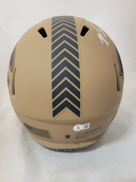 BRIAN URLACHER AUTOGRAPHED CHICAGO BEARS FULL SIZE SALUTE TO SERVICE (STS 2) SPEED REPLICA HELMET W/ "HOF 18" INSCRIPTIONBECKETT QR CODE HOLOGRAMTHIS MEANS THE HELMET WAS SIGNED WITH A BECKETT REPRESENTATIVE PRESENT SO YOU CAN BE 100% CERTAIN ITS THE REAL THING.