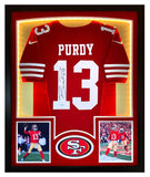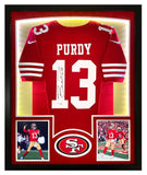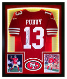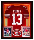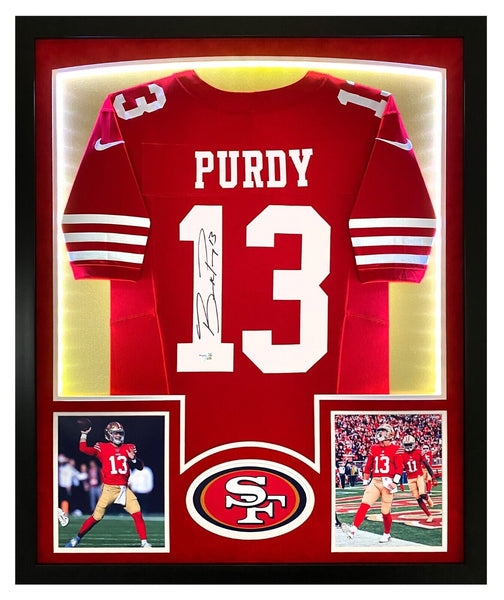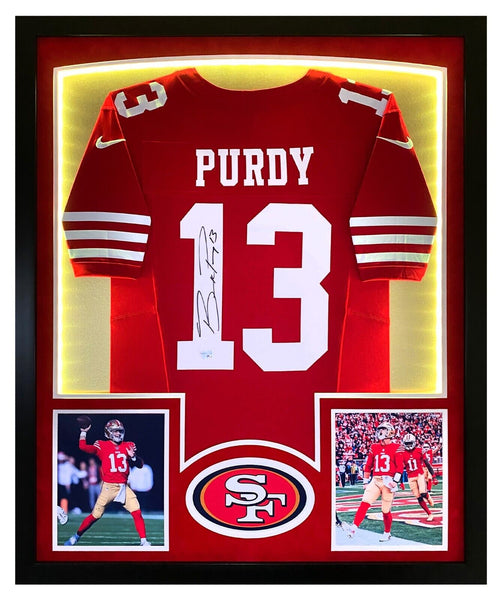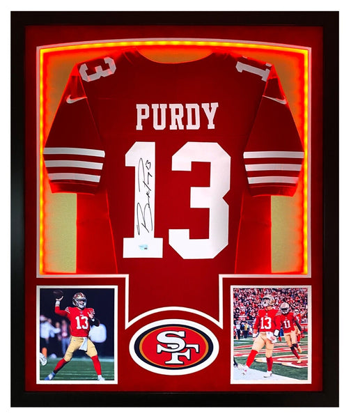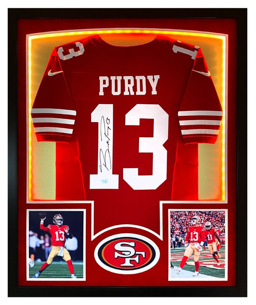 Brock Purdy Autographed 49ers Red Nike Game Jersey Framed LED