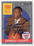 Derrick Coleman Signed Nets 1990 Hoops Rookie Trading Card #390 - (SCHWARTZ COA)