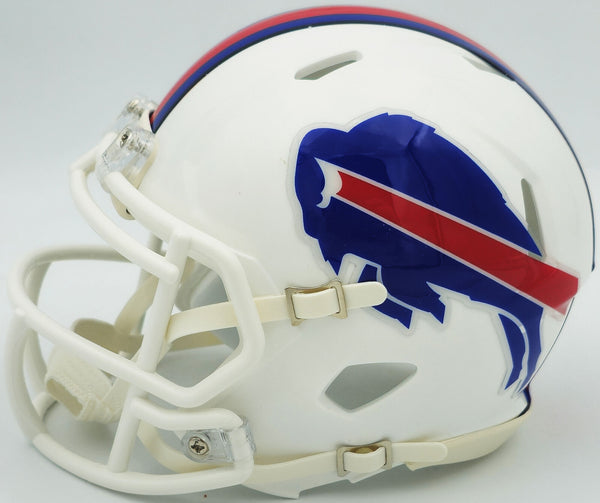 This is a Buffalo Bills White Speed Mini Helmet that has been hand signed by Bruce Smith. This item has been witnessed and certified authentic by Beckett Authentication (BAS) and comes with their tamper-proof witness sticker.