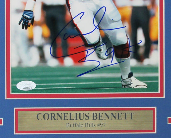 Cornelius Bennett Buffalo Bills Signed/Autographed 8x10 Photo Framed. The outer frame size is 13 inches x 16 inches. This photo is authenticated by JSA and includes their Tamper-proof Sticker and Certificate of Authenticity.