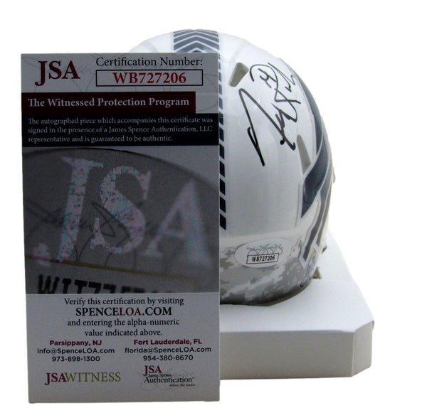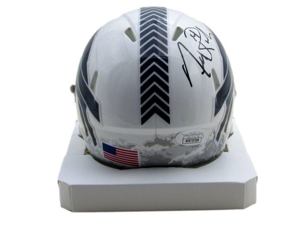 Frank Reich Signed/Autographed White Salute to Service Mini Football Helmet Buffalo Bills. This helmet is authenticated by JSA and includes their tamper-proof hologram sticker and Certificate of Authenticity.