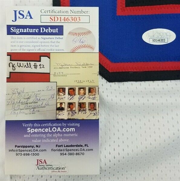 This autographed jersey has been personally hand-signed by Gregory Rousseau of the Buffalo Bills. This autograph is certified by James Spence Authentication (JSA). It comes with the numbered hologram and matching Certificate of Authenticity.Custom on-field style jerseys are a more affordable option for autograph seekers. These jerseys do not have any brand name or tags and are made in the Philippines. They feature stitched on names and numbers and are made to look very similar to the on-field jerseys that the players wear. These custom jerseys are very commonly used in the memorabilia industry.