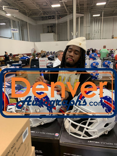 The number in the listing title is just an inventory sku for our records and is not the authentication number. The item pictured is a stock photo unless otherwise noted. This is a Buffalo Bills Full Size Replica Helmet that was personally autographed by James Cook. Includes a certificate of authenticity from Beckett Authentication Services (BAS) and Denver Autographs.