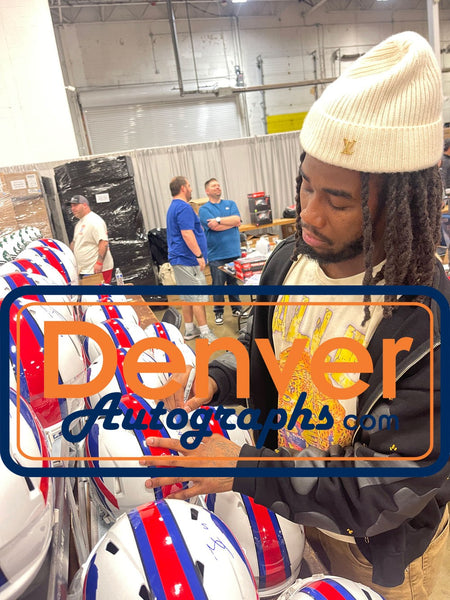 The number in the listing title is just an inventory sku for our records and is not the authentication number. The item pictured is a stock photo unless otherwise noted. This is a Buffalo Bills Full Size Authentic Helmet that was personally autographed by James Cook includes "Bill Mafia" inscription. Includes a certificate of authenticity from Beckett Authentication Services (BAS) and Denver Autographs.FREE SHIPPING within the USA on orders over $10!