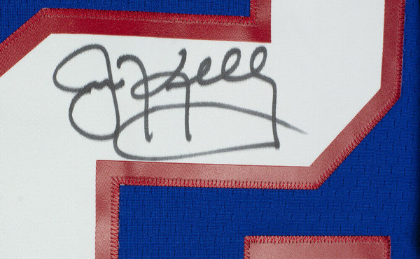 Featured is a Jim Kelly signed Buffalo Bills blue Mitchell & Ness football jersey. This jersey was hand signed by Jim Kelly in the presence of a JSA authentication representative. Included with the jersey is a JSA witnessed hologram and certificate of authentication. This jersey would make a great addition to any sports memorabilia collection.. SPECIFICATIONS Autographed By: Jim Kelly Team: Buffalo Bills Sport: Football Authentication: James Spence Authentication (JSA)