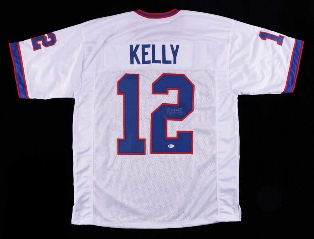 Custom on-field style jersey. Everything is sewn on, size XL. Has been hand-signed by Jim Kelly (HOF).The lot / autograph(s) includes an official Beckett Authentication Services serially-numbered hologram for authenticity purposes. The signing of this item was witnessed by Beckett.Authentication: Beckett Hologram