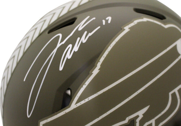 Josh Allen Autographed Buffalo Bills Authentic Salute Helmet Beckett 38742 The number in the listing title is just an inventory sku for our records and is not the authentication number. The item pictured is a stock photo unless otherwise noted. This is a Buffalo Bills full size authentic salute helmet that was personally autographed by Josh Allen. Includes a certificate of authenticity from Beckett Authentication Services (BAS) and Denver Autographs.