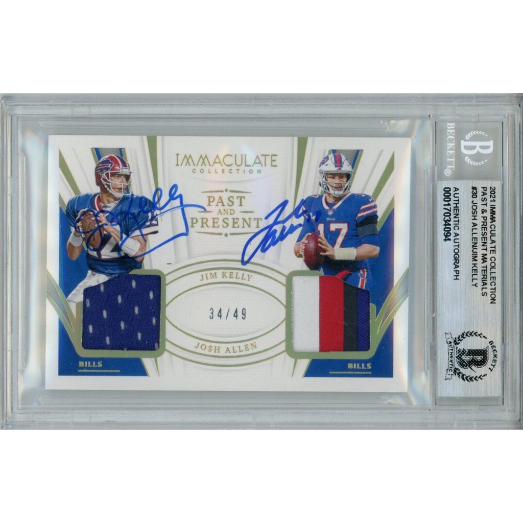 The number in the listing title is just an inventory sku for our records and is not the authentication number. The item pictured is the exact item you will receive, please see photos for condition. This is a Buffalo Bills slabbed 2021 Immaculate Past & Present trading card that was personally autographed by Josh Allen and Jim Kelly. Includes a certificate of authenticity from Beckett Authentication Services (BAS) and Denver Autographs.