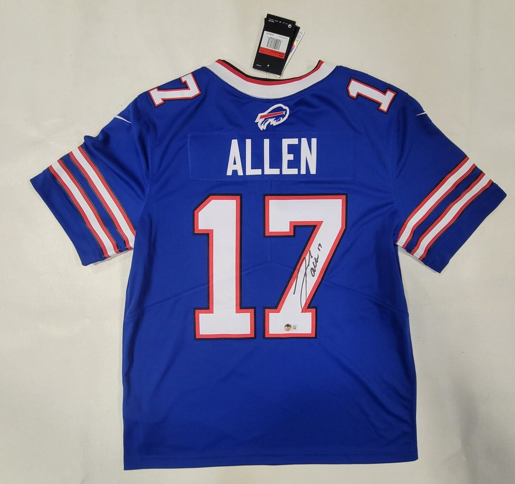 JOSH ALLEN AUTOGRAPHED SIGNED NIKE STITCHED LIMITED AUTHENTIC JERSEYSIZE LBECKETT WITNESSED QR COATHIS MEANS THE JERSEY WAS SIGNED WITH A BECKETT REPRESENTATIVE PRESENT SO YOU CAN BE 100% CERTAIN ITS THE REAL THING.