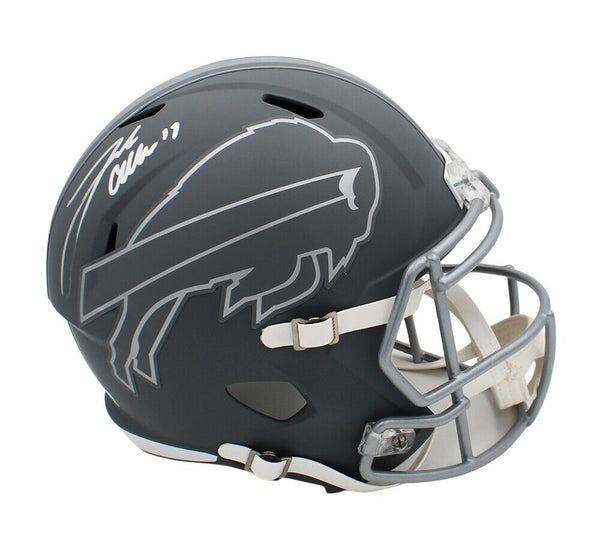 A Buffalo Bills Speed Replica Slate NFL Helmet hand signed by Josh Allen. The item and signature are in excellent condition. Josh was drafted by the Bills in the first round of the 2018 NFL Draft and is a 2x Pro Bowler. AUTHENTICATION: The item is accompanied by an Beckett Serial Numbered and Databased Hologram.