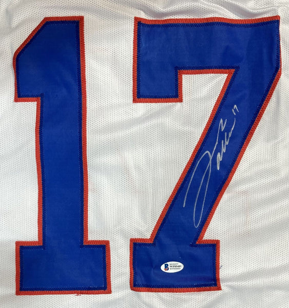 Featured is a Josh Allen signed custom football jersey. This jersey was hand signed by Allen and comes with the Beckett witnessed hologram only. This jersey features professionally sewn letters and numbers and is size XL. This jersey has no team tags or emblems and is intended as a sports collectible. This jersey would make a great addition to any sports memorabilia collection!. SPECIFICATIONS Autographed By: Josh Allen Team: Buffalo Bills Sport: Football Authentication: Beckett Grading Services