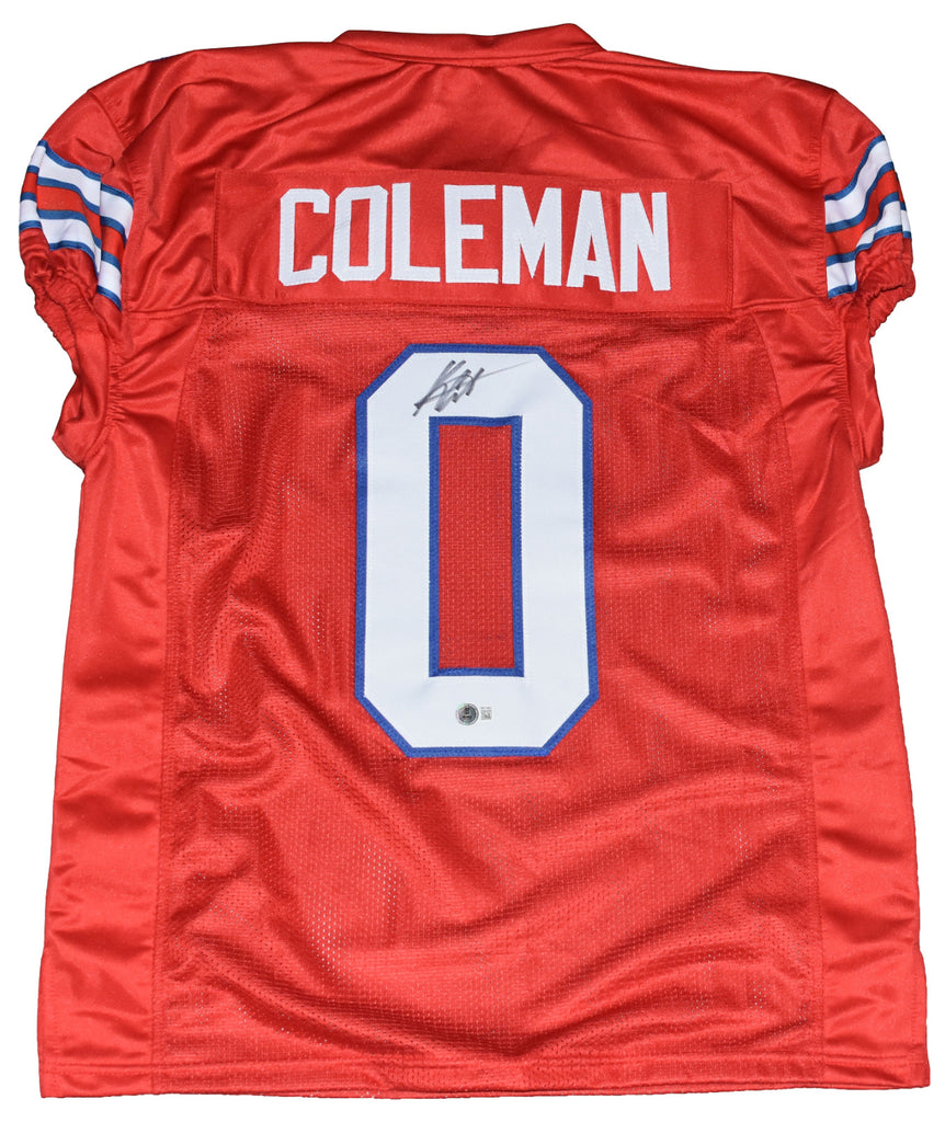 Keon Coleman, star wide receiver for the Buffalo Bills, has hand signed this red custom game cut jersey at a private signing. Jersey is size XL and all letters/numbers are sewn-on. This item is authenticated by Beckett Authentication Services and was signed in the presence of one of their representatives. Their tamper-evident hologram featuring a QR code and serial number is on the item. The authenticity can be verified online by entering the serial number or scanning the QR code.Item pictured may not be the exact item you will receive. It will be similar quality, and we guarantee your satisfaction.