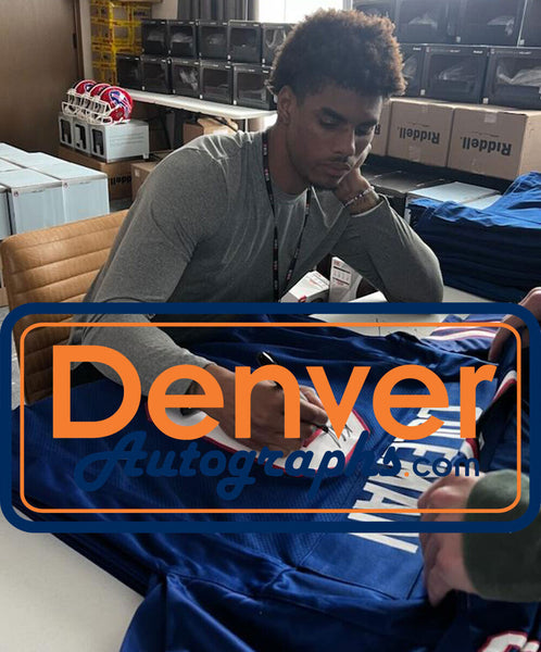The number in the listing title is just an inventory sku for our records and is not the authentication number. The item pictured is a stock photo unless otherwise noted. This is a Pro Style BLue Jersey that was personally autographed by Keon Coleman. Includes a certificate of authenticity from Beckett Authentication Services (BAS) and Denver Autographs.FREE SHIPPING within the USA on orders over $10!