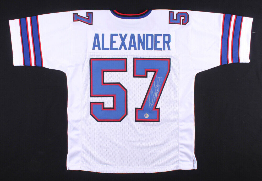 Custom on-field style jersey. Everything is sewn on, size L. Hand-signed in black felt-tip pen by Lorenzo Alexander. The lot / autograph(s) includes an official Pro Player hologram for authenticity purposes.Authentication: Pro Player Hologram