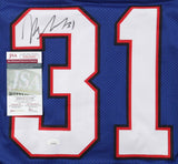 Custom on-field style jersey. Everything printed on, size XL. Hand-signed by Rasul Douglas (Buffalo Bills).The autograph(s) includes an official James Spence Authentication (JSA) hologram and matching COA for authenticity purposes. The signing of this item was witnessed by JSA.Authentication: JSA COA