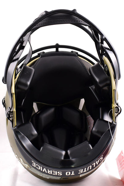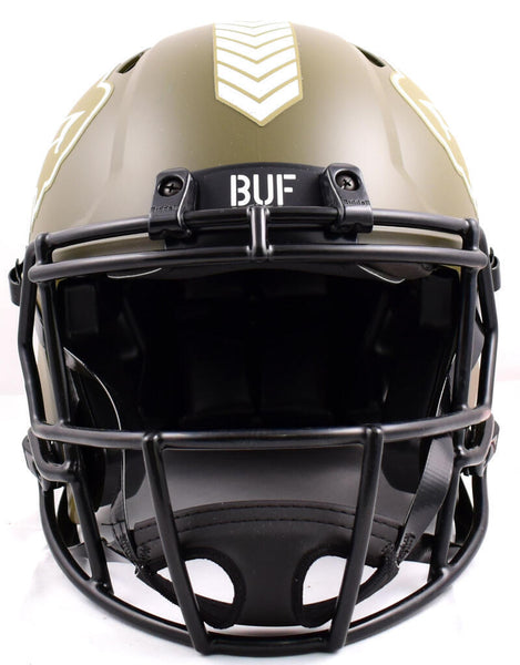 Stefon Diggs Autographed Buffalo Bills F/S Salute to Service Speed Authentic Helmet-Beckett W Hologram *Gold This is a Stefon Diggs of the Buffalo Bills hand autographed Riddell Football Salute to Service full size Speed Authentic helmet. This item has a Beckett Witnessed Authentication, which comes with a numbered hologram and a QR code for verification. You can view this item on the Beckett Authentication website and it shows when and where the item was signed. It was signed either at a public autograph appearance or a private signing. This is a stock photo of the item. Although you may not receive this exact item, the item you receive is virtually identical, brand new, and in great shape.