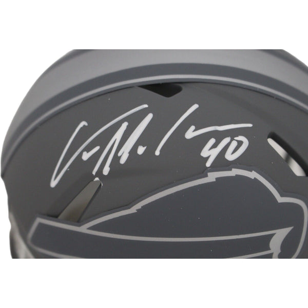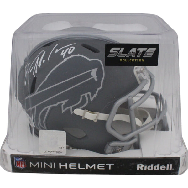 The number in the listing title is just an inventory sku for our records and is not the authentication number. The item pictured is a stock photo unless otherwise noted. This is a Buffalo Bills Slate Mini Helmet that was personally autographed by Von Miller. Includes a certificate of authenticity from Beckett Authentication Services (BAS) and Denver Autographs.FREE SHIPPING within the USA on orders over $10!