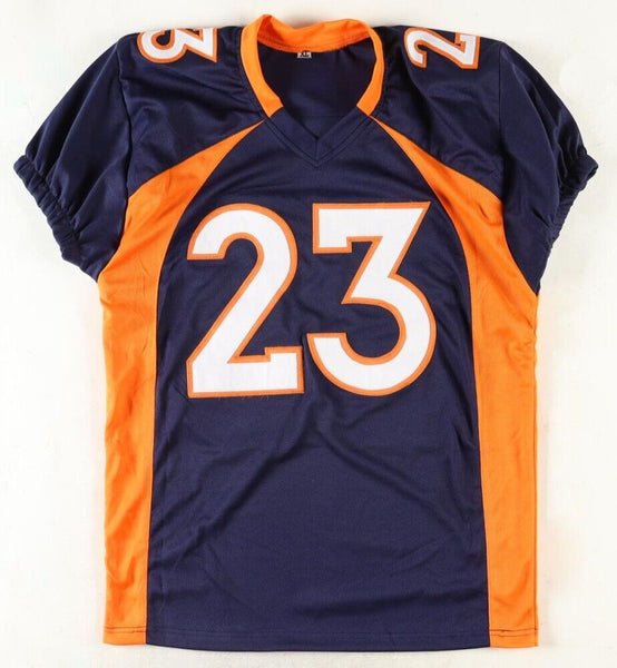 Custom on-field style jersey. Everything sewn on, size XL. Hand-signed by Willis McGahee.The autograph includes an official Beckett Authentication Services serially numbered hologram and QR Code card for authenticity purposes. The signing of this item was witnessed by Beckett.Authentication: Beckett Hologram with QR Code card