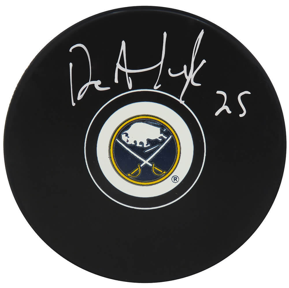 Dave Andreychuk signed Buffalo Sabres logo hockey puck. Item comes with a Schwartz Sports Memorabilia tamper-proof numbered hologram and Certificate of Authenticity which can be verified online.