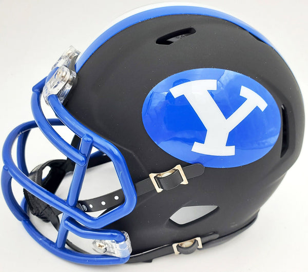This is a BYU Cougars Black Speed Mini Helmet that has been hand signed by Zach Wilson. This item has been certified authentic by Beckett Authentication (BAS) and comes with their tamper-proof sticker and matching certificate of authenticity.