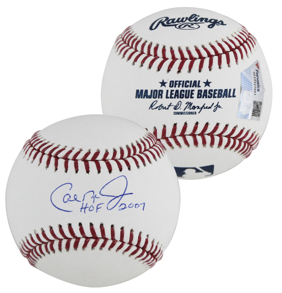 This Autographed Oml Baseball with the inscription of "HOF 2007" has been Personally Signed by Cal Ripken Jr. of the Baltimore Orioles. This item is 100% Authentic to includes a numbered hologram by Fanatics. We conducted an autograph signing with Cal Ripken Jr. where multiples of the same item were signed. While the photographs are representative of this item, the size, placement and strength of the signature may vary. Each item is hand signed, therefore, each autograph is unique. This item can be verified through Fanatics.