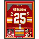 Framed Autographed/Signed Joe Nieuwendyk 35x39 Calgary Red Hockey Jersey JSA COA The item is professionally framed and matted with two 5x7 photos, measures 35x39 inches and is ready to be hung in your man cave! Photo and matting requests can be made.