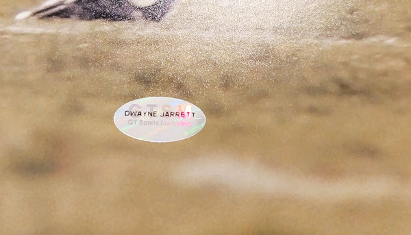 This is a 16x20 Photo that has been hand signed by Dwayne Jarrett. This item was signed in the presence of a Mill Creek Sports representative and comes with their serial numbered hologram and matching certificate of authenticity.