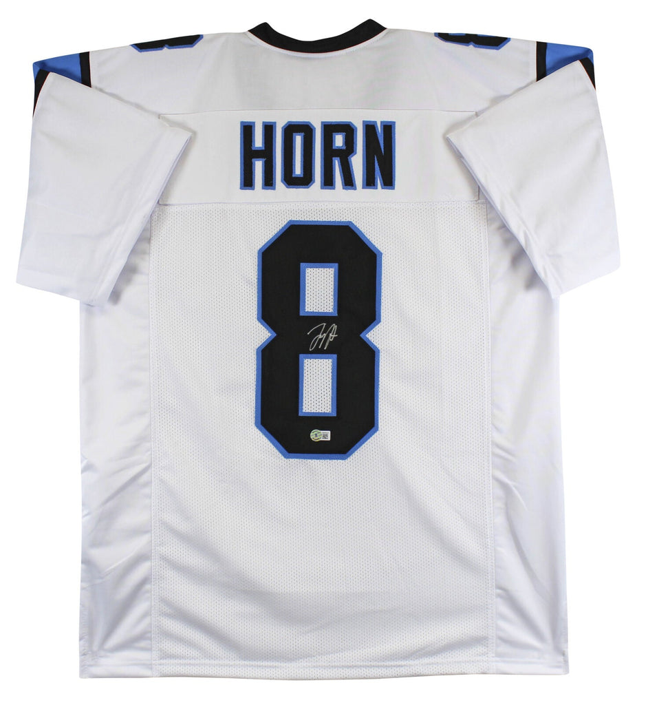 This Autographed White Pro Style Jersey has been Personally Signed by Jaycee Horn of the Carolina Panthers. This item is 100% Authentic to include a hologram by Beckett Authentication Services. This item may come with the new Beckett Authentication hologram that has a scannable QR code rather than the traditional COA. If you would like to have a COA, you are welcome to reach out to Beckett for a printed certification once you receive your item. This is a BAS Witnessed Protection Program item which means a Beckett Authentication Service representative was present when this item was being signed. We have multiples of this same item. While the photographs are representative of this item, the size, placement and strength of the signature may vary. Each item is hand signed, therefore, each autograph is unique. This is a X-Large sized, non-branded, custom-stitched Jersey.