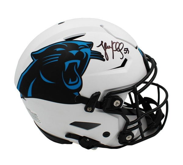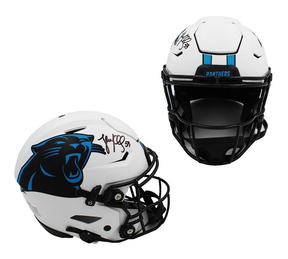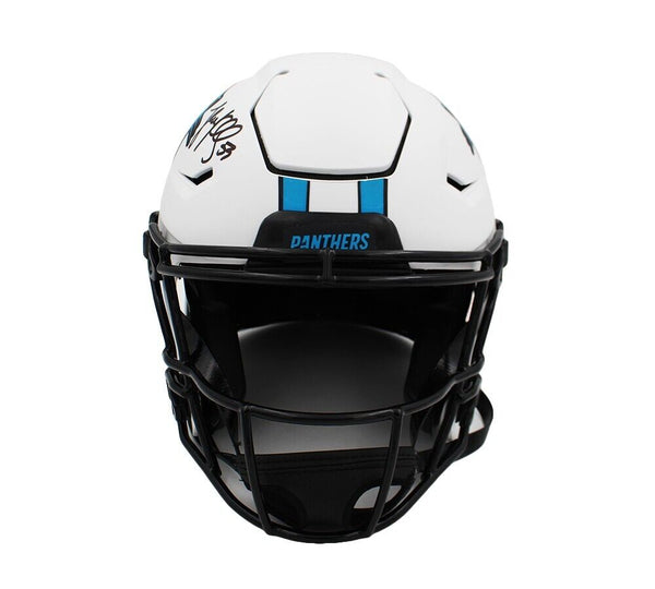 A Carolina Panthers Speed Flex Authentic Lunar NFL Helmet hand signed by Luke Kuechly. The item and signature are in excellent condition - Luke established himself as an elite talent quickly by winning Defensive Rookie of the Year Award and then Defensive Player of the Year. He is a 7x Pro Bowler and 3x Butkus Award winner. AUTHENTICATION: Your item has been tagged with a SmarTag Powered by Prova Technology, which gives you digital access to your items authentication records, including a proof picture from the signing.