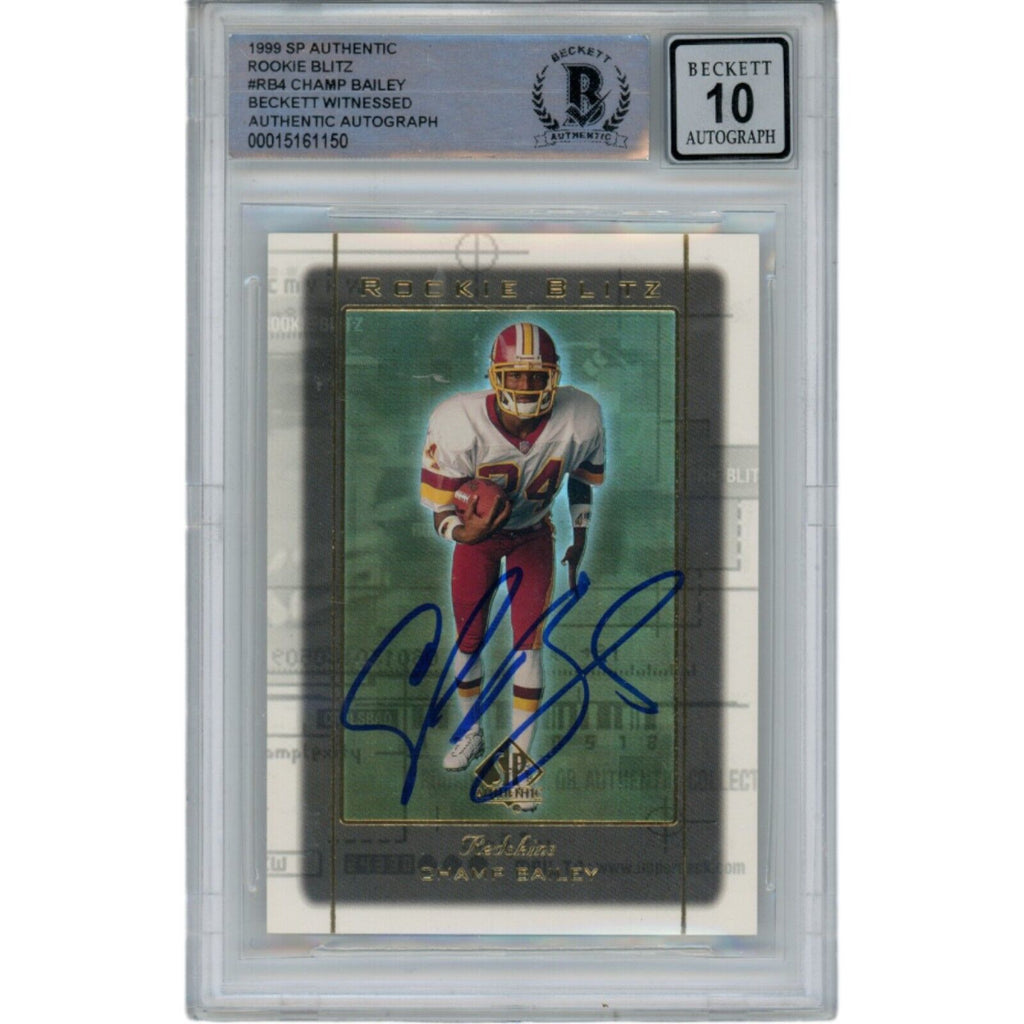 The number in the listing title is just an inventory sku for our records and is not the authentication number. The item pictured is the exact item you will receive, please see photos for condition. This is a Washington Redskins 1999 Upper Deck SP #RB4 Slabbed Trading Card with a Grade 10 Autograph that was personally autographed by Champ Bailey. Includes a certificate of authenticity from Beckett Grading Services (BAS) and Denver Autographs.FREE SHIPPING within the USA on orders over $10!