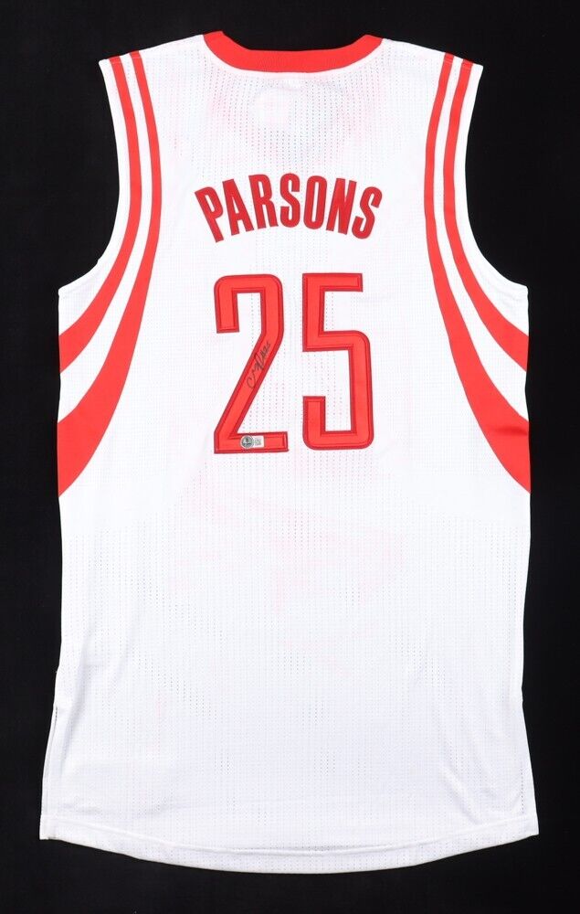 Adidas jersey with everything sewn on, size L2. Hand-signed by Chandler Parsons (Houston Rockets). Please note, there is some red staining throughout the jersey (see photos).The autograph includes an official Beckett Authentication Services serially numbered hologram for authenticity purposes.Authentication: Beckett Hologram