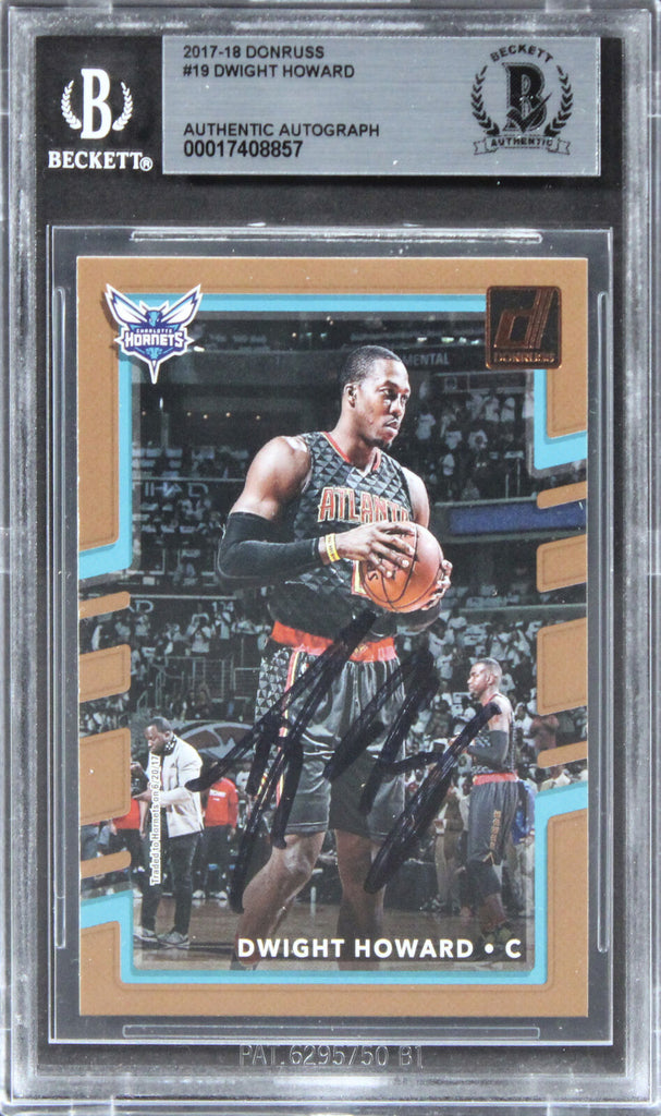 This Autographed 2017 Donruss #19 Card has been Personally Signed by Dwight Howard of the Charlotte Hornets. This item is 100% Authentic, it comes slabbed and authenticated by Beckett Authentication Services. The authenticity can be verified on Beckett Authentication Services website.