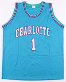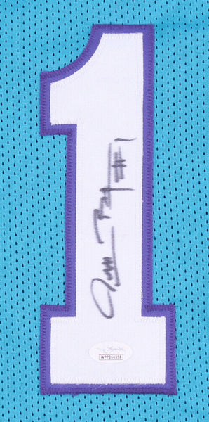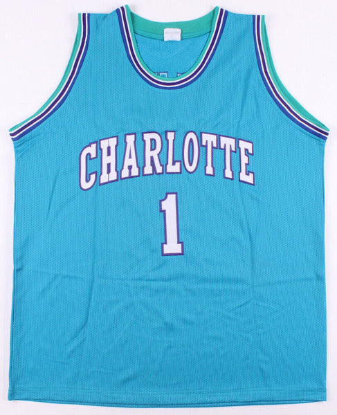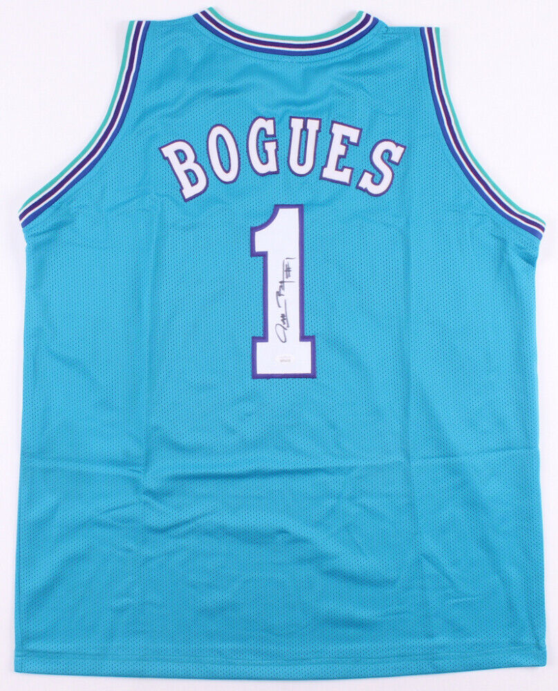 Custom on court style jersey with everything sewn on, size XL. Jersey has been hand-signed in black paint pen by Muggsy Bogues. The lot / autograph(s) includes an official James Spence Authentication (JSA) hologram and matching COA for authenticity purposes.Authentication: JSA COA