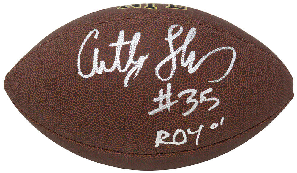 Anthony Thomas signed Wilson Super Grip full size NFL football with 'ROY 01' inscription. Item comes with a Schwartz Sports Memorabilia tamper-proof numbered hologram and Certificate of Authenticity which can be verified online.